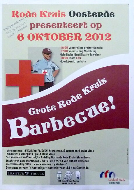 Affiche : Rode Kruis Oostende. Grote Rode Kruis Barbecue !. Dienstencentrum 't Kasteeltje. 06/10/2012