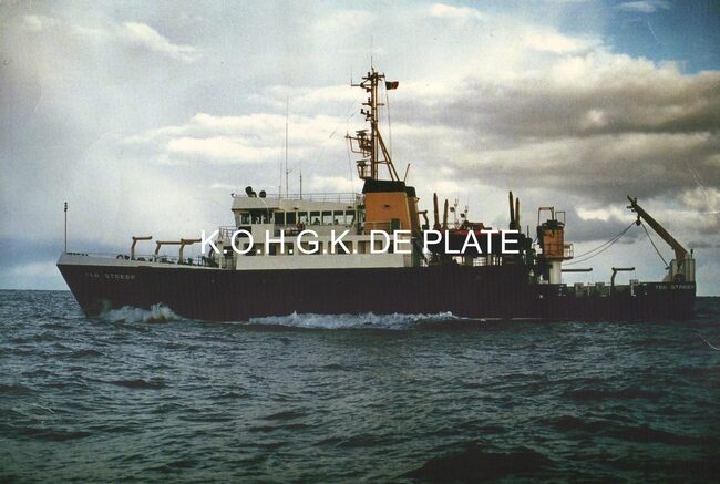 Formaat : 9 x 13 cm. - Op de eerste foto zien we het hydrografisch vaartuig "Ter Streep" in de havengeul. Op de achtergrond het Ooststaketsel. Op de tweede foto zien we het hydrografisch vaartuig "Ter…