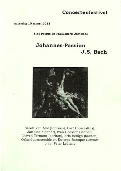 In de Sint-Petrus en Pauluskerk. - Sarah Van Mol (sospraan), Bart Uvyn ( altus), Jan Caals (tenor), Ivan Goossens (tenor), Lieven Termont (bariton), Kris Belligh (bariton). - Orlandusensemble en Euterpe Baroque Consort o.…