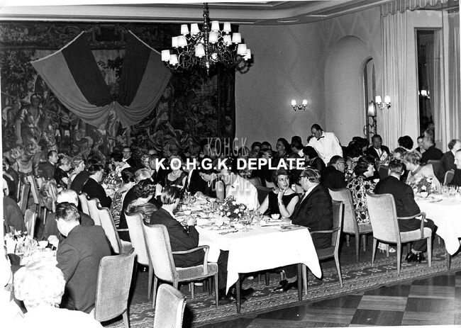 Formaat : 13 x 18 cm. - De genodigden tijdens het diner in een Düsseldorfs hotel.