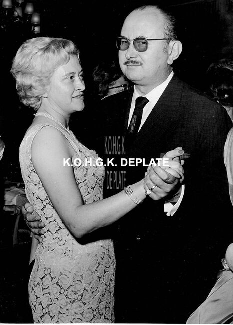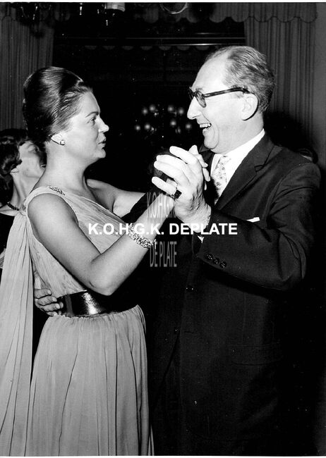Formaat : 13 x 18 cm. - Na het diner werd er ook gedanst. Burgemeester Jan Piers danst de "Twist", toen populair. Rechts, zijn echtgenote.