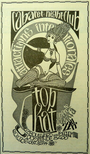 Formaat : 18 x 13 cm. - We zien van links naar rechts: Hotel de la Paix, night-club Top Hat en Café des Sports in de Langestraat. Tussen de Antoon Belpairestraat en de Hertstraat
