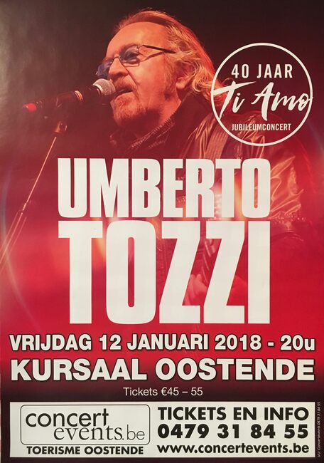 Affiche : Umberto Tozzi. Ti Amo Jubileumconcert. Kursaal Oostende. Op 12 januari 2018