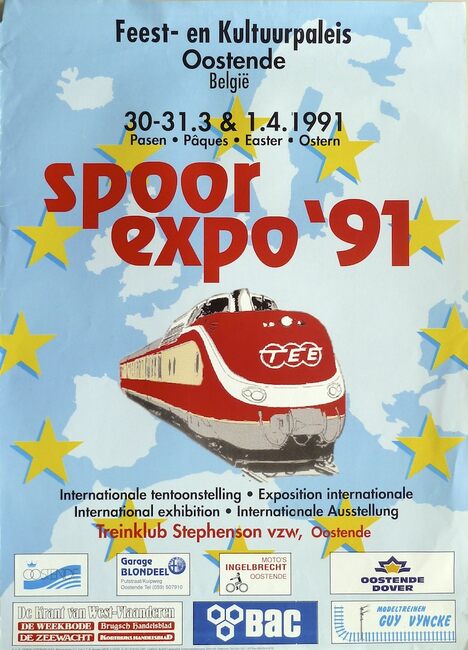 Affiche : Treinklub Stephenson vzw. Spoor Expo '91. Feest- en Kultuurpaleis Oostende. 30 maart tot 1 april 1991.