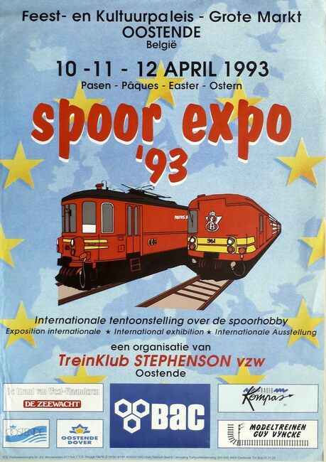 Affiche : Treinklub Stephenson vzw. Spoor Expo '93. Feest- en Kultuurpaleis Oostende. 10 tot 12 april 1993.