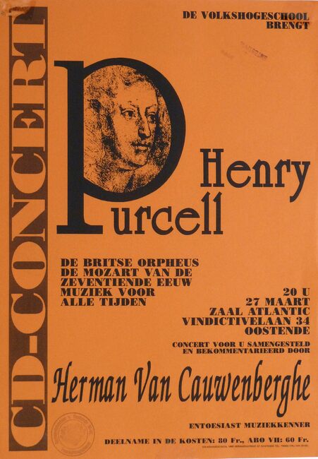 Affiche : Volkshogeschool. Henry Purcell. Zaal Atlantic Oostende. 27/03/1995.