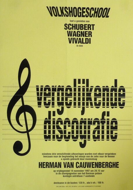 Affiche : Volkshogeschool. Vergelijkende discografie. Thermae Palace Oostende. 14/11/1997.
