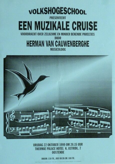 Affiche : Volkshogeschool. Een muzikale cruise. Thermae Palace Hotel Oostende. 22/10/1999.