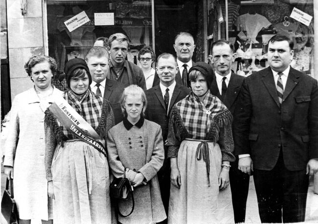 Negatief : 6 x 5,5 cm. - Ontvangst op het stadhuis. - Vooraan, de jeugdprins en -prinses Albrecht en Isabella van Mariakerke 1965, het prinsenpaar Albrecht en Isabella van Mariakerke 1965, in gezelschap van Blanche…