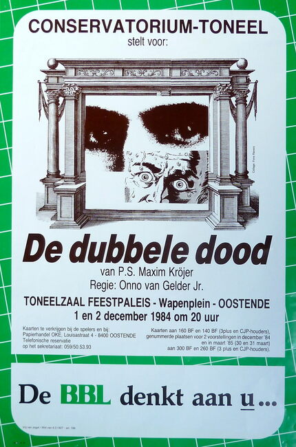 Formaat : 42 x 30 cm. Auteur: Henrik Ibsen. Regisseur: Onno van Gelden jr. Met: Chantal Vanhoucke, Patrick Goor, Frédéric Mylle, Lieve Verbeeke, Fons Vandenbussche. Met medewerking van Cine Rialto.