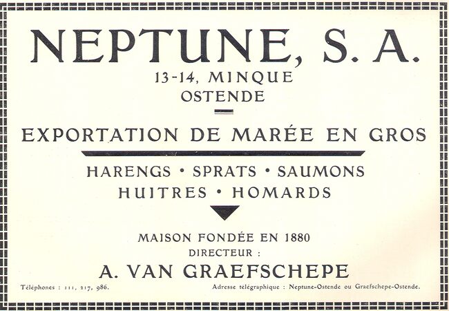 Advertentie : Neptune. Exportation de marée en gros. Vismijn 13-14