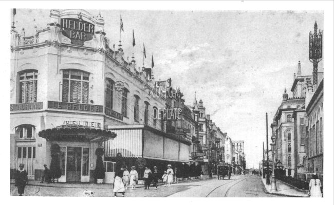 Afdruk postkaart Albert nr.201. - Formaat : 12,5 x 19 cm. - Het hotel en restaurant waren gelegen op het kruispunt van de Langestraat (rechts) en Van Iseghemlaan (links). Op het huidige Monacoplein was een…