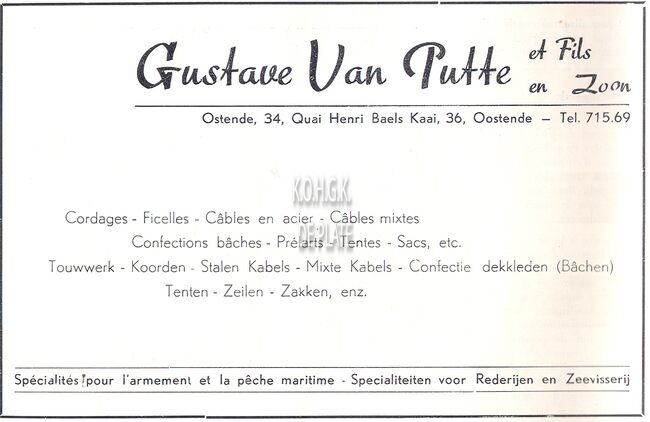 Advertentie : Gustave Van Putte en Zoo,. Touwwerk - Koorden - Kabels. Henrik Baelskaai 36, Oostende