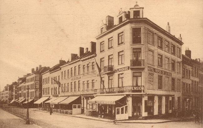 Formaat : 9 x 14 cm. - Montmerency, 6 Rue de l'Abrenvoir, Nantes. -Propriétaire A. Demulder. Vue sur la Mer et le Port. Maison ouverte toute l'année. Chauffage central. Grande Spécialité de Diners de Poissons.…
