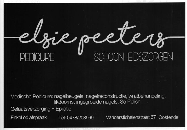 Advertentie : Elsie Peeters. Pedicure - Schoondheidszorgen. Vanderstichelenstraat 67, Oostende