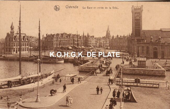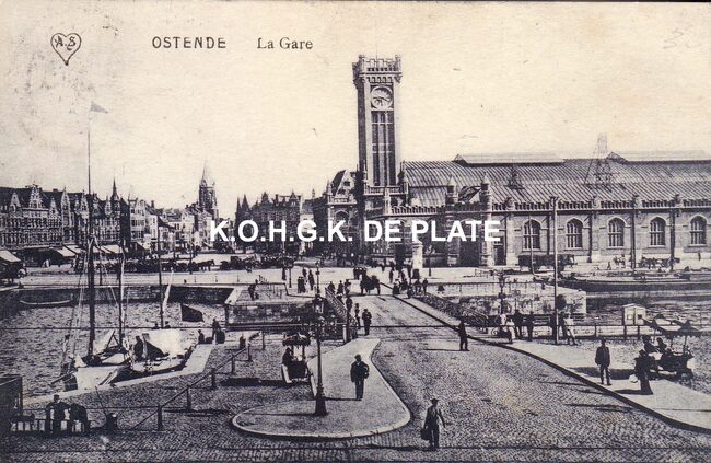 Photographie artistique Ed. Nels, Serie Ostende Delft, N° 20. - Ostende - la station. - Gelegen langs de Keizerskaai en de Vandersweepplaats op de wijk Hazegras. Links, ook langs de Keizerskaai, de estaminets "De…