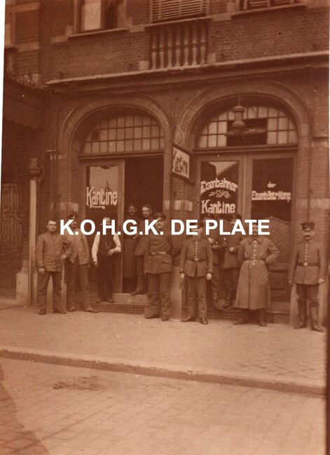 (Café Koophandel). En face de la gare. Spécialité de Homards à l'Américaine. Propriétaire : Carolus-Brys. Salle spécialement aménagée pour banquets, noces et fêtes