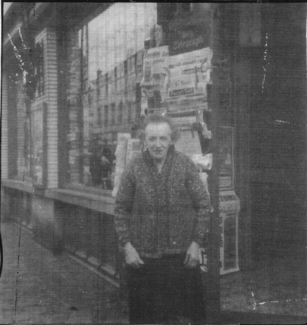 Afdruk, formaat : 10 x 9,5 cm. - In deze boekhandel kon men van alles krijgen, en bij het begin van het schooljaar werd de winkel overrompeld door de leerlingen. Mevrouw Degryse was een vertrouwd beeld achter de stapels…