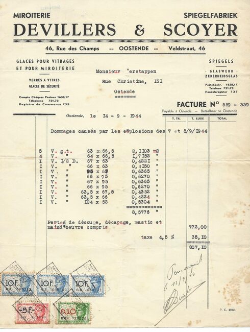 Spiegels - Glaswerk - Zekerheidsglas - Herstellen van oorlogsschade aan de woning Christinastraat 151. - Schade door ontploffingen op 7 en 8 september 1944