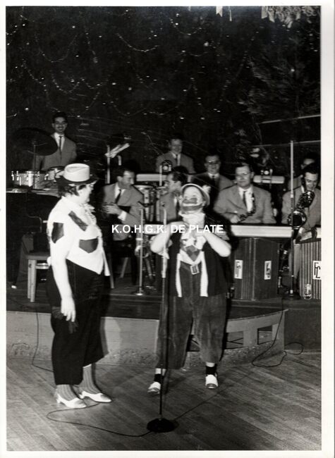 Formaat : 13 x 18 cm. - Irma Westerlinck. Samen met Madeleine Vens in een sketch. Op de achtergrond, het kursaalorkest van Franz Lebrun. Links, zien we onze stadsgenoot Roger Vanhaverbeke. Hij speelde contrabas, en op…