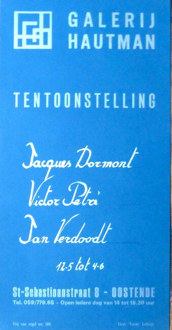 Advertentie : Jacques Dormont, Victor Petré, Jan Verdoodt. Galerie Hautman. 12/05-04/06/1973