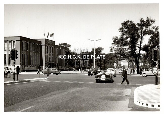 Formaat : 9 x 12,5 cm. - Op het kruispunt staat nog een frietkraam. In de achtergrond links de Torhoutsesteenweg, rechts de Alfons Pieterslaan en vooraan de Koninginnelaan