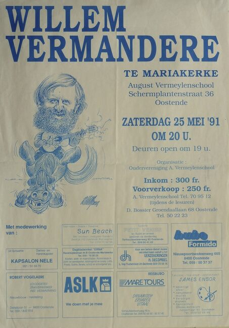 Formaat : 46 x 31 cm. - Georganiseerd door het ANZ West-Vlaanderen met medewerking van VTB-VAB. Medewerkers : Willem Vermandere, Teatermime Frederik, Het Loze Vissertje (gemengd koor), Roger Danneels (Hammond-orgel)