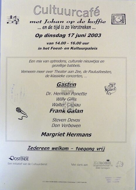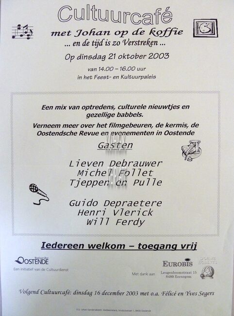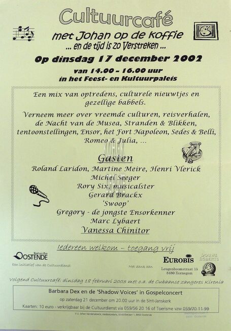 Formaat : 42 x 30 cm. Gasten : Roland Laridon, Martine Meire, Henri Vlerick, Michel Seeger, Rory Six, Gerard Brackx, "Swoop", Gregory de jongste Ensorkenner, Marc Lybaert, Vanessa Chinitor