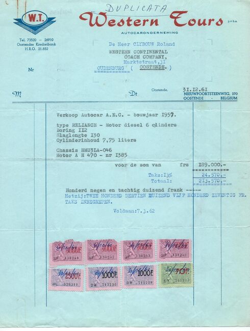 Verkoop en levering van autocar REO 1949 aan Western Tours