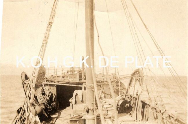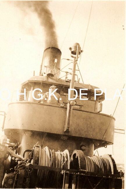 Afdruk. - Formaat : 8,5 x 13,5 cm. - In de achtergrond een pakketboot