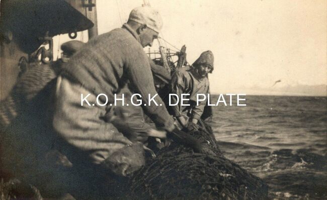 Vergroting. - Formaat : 30 x 40 cm. De visangels worden gevuld aan boord van het schip, klaar om te verkopen