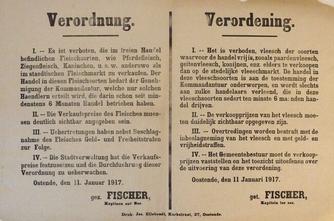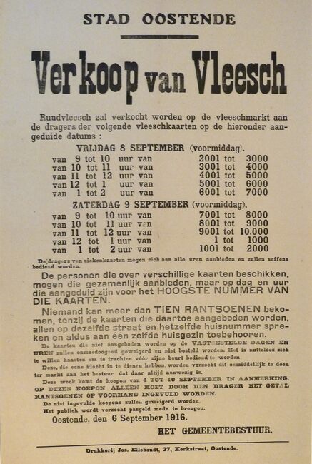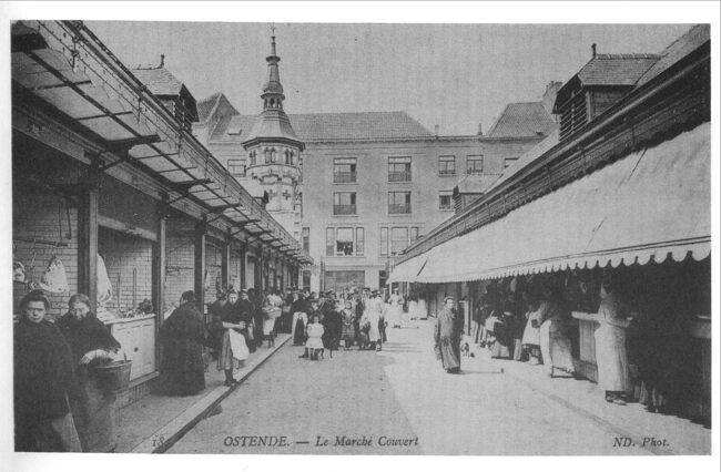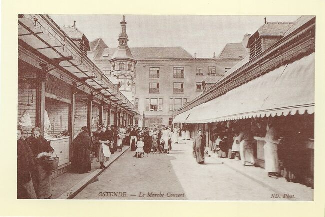 Ostende - Marché aux Viandes. N.508 J.-B.P. Ostende. Deze markt bestond uit verschillende rijen overdekte stalletjes, vernield tijdens de Tweede Wereldoorlog.