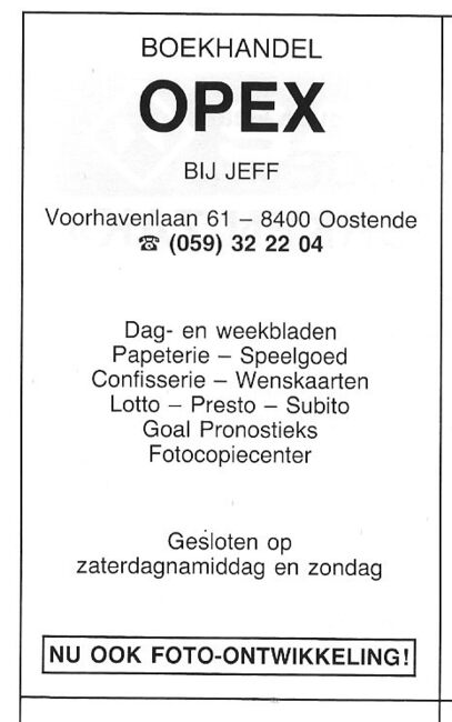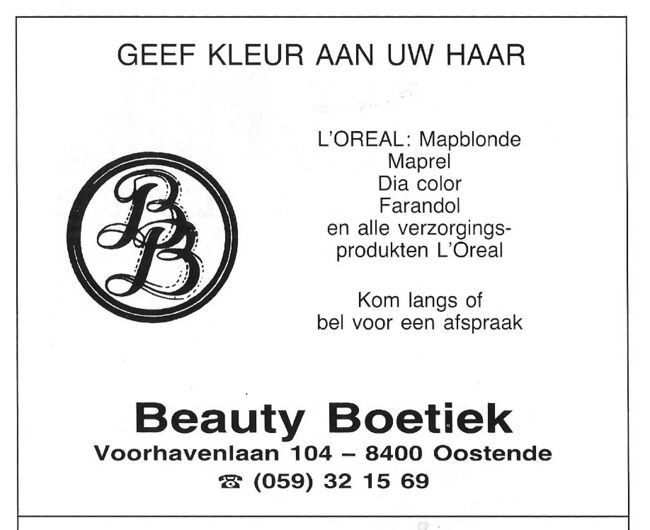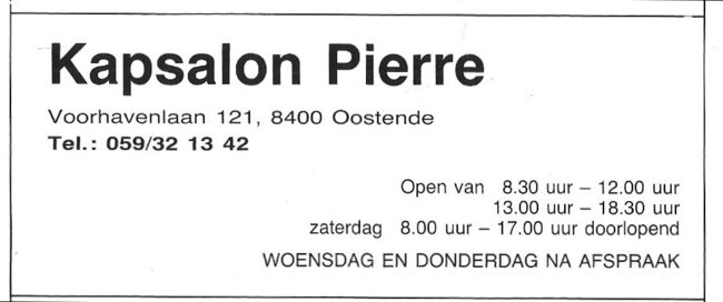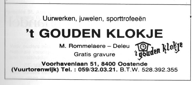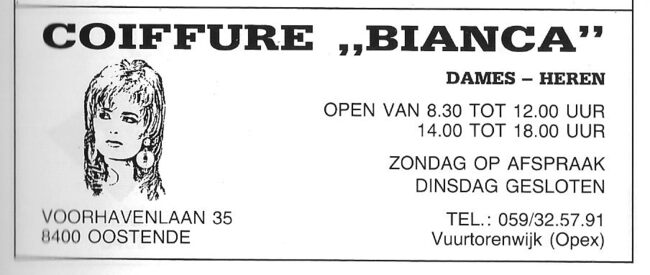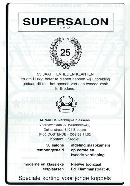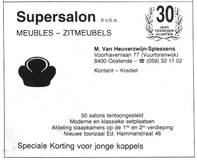 M. Van Heuverzwijn-Spiessens. Ook : Duinenstraat, Bredene. Nieuwe toonzaal : E. Hammanstraat 46, Oostende