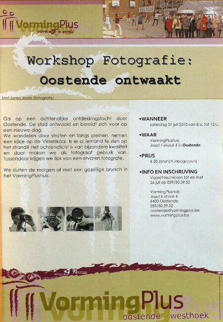 Affiche : VormingPlus. Workshop fotografie : Oostende ontwaakt. Vormingplushuis. 31/07/2010