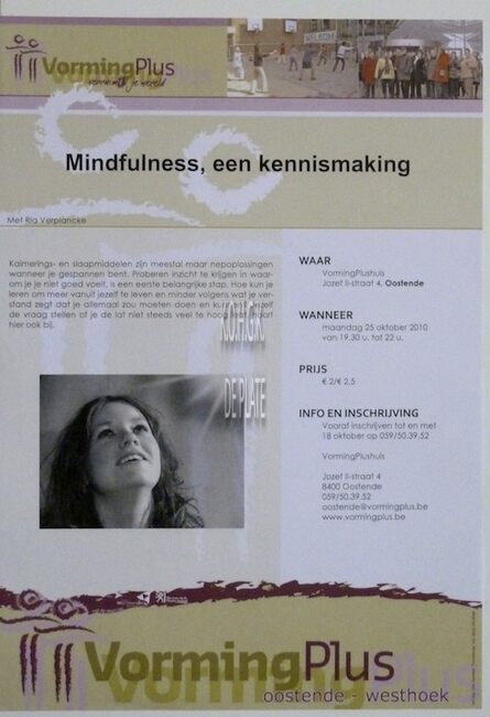 Affiche : VormingPlus. Mindfulness, een kennismaking. VormingPlushuis. 25/10/2010.