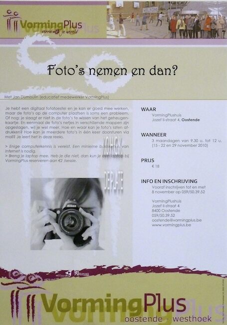 Affiche : Vormingplus. Foto's nemen en dan?. Vormingplushuis. 15, 22 en 29 november 2010.