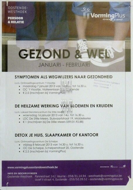 Affiche : VormingPlus. Gezond en Wel. Oostende. januari - februari 2013.