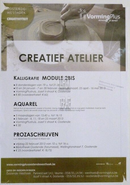 Affiche : Vormingsplus. Creatief atelier. Verscheidene locaties. 01 en 02/2013