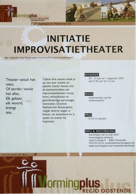 Affiche : Vormingplus. Initiatie improvisatietheater. Achturenhuis. 30-31/07 en 1/08/2007