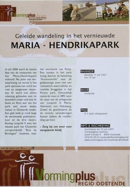 Affiche : Vormingplus. Geleide wandeling in het vernieuwde Maria-Hendrikapark. Oostende. 17/07/2007