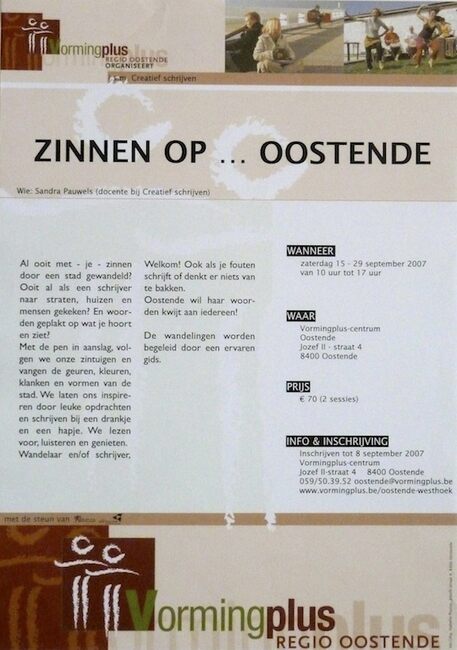 Affiche : Vormingplus. Zinnen op... Oostende. Vormingplus Centrum Oostende (Jozef II-straat 4). 15 tot 29-09-2007
