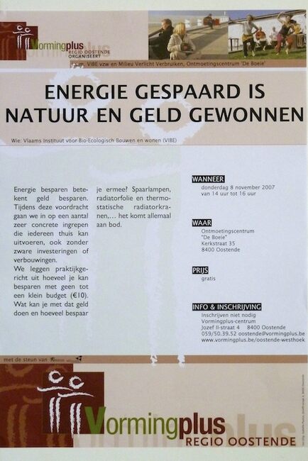 Affiche : Vormingplus. Energie gespaard is natuur en geld gewonnen. Ontmoetingscentrum 'De Boeie'. 8/11/2007