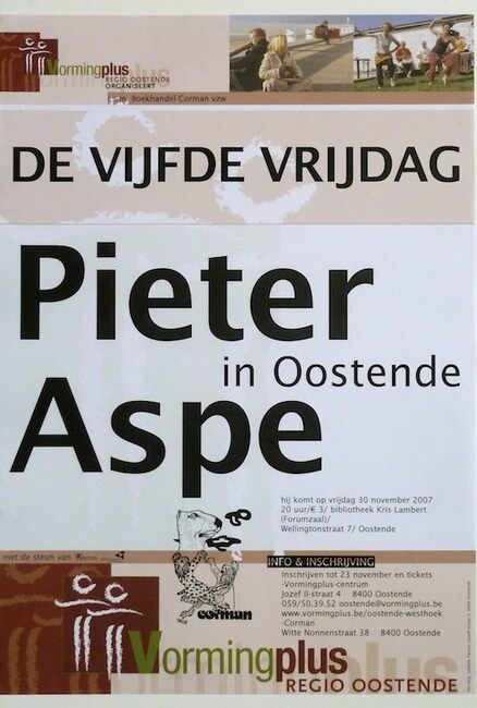 Affiche : Vormingplus. De vijfde vrijdag : Pieter Aspe in Oostende. Bibliotheek Kris Lambert. 30/11/2007