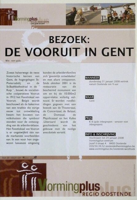 Affiche : Vormingplus. Bezoek: De Vooruit in Gent. Gent. 31/01/2008.