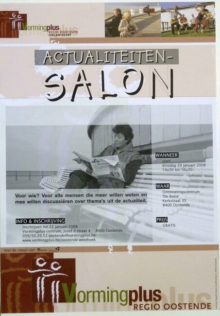 Affiche : Vormingplus. Actualiteitensalon. Ontmoetingscentrum "De Boeie". Start 29/01/2008