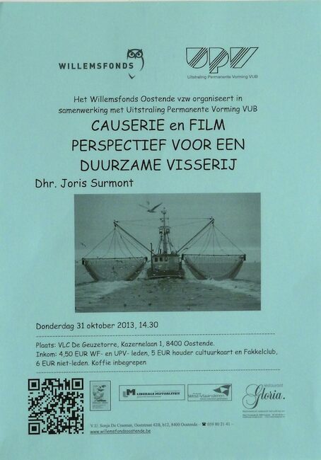 Affiche : Willemsfonds. Causerie en film : Perspectief voor een duurzame visserij. VLC De Geuzetorre. 31/10/2013