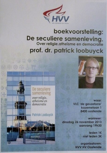 Affiche : HVV Oostende. Boekvoorstelling : De seculiere samenleving. VLC De Geuzetorre. 26/11/2013