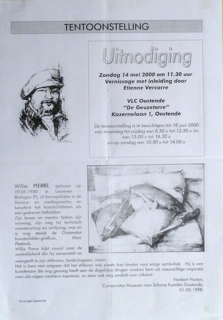 Affiche : Tentoonstelling. Uitnodiging tentoonstelling Willie Pierre. VLC Oostende De Geuzetorre. 14/05 tot 18/06/2000.