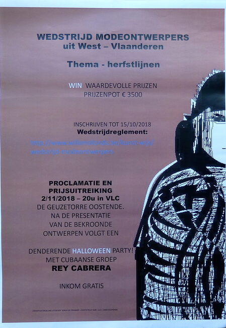 Affiche : Willemsfonds. Wedstrijd modeontwerpers uit West-Vlaanderen. VLC De Geuzetorre Oostende. 02/11/2018