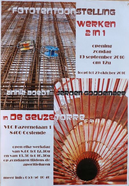 Affiche : Annie Boedt en Jeroen Goddemaer. Fototentoonstelling Werken 2 in 1. De Geuzetorre (Oostende). 19 september - 29 oktober 2010